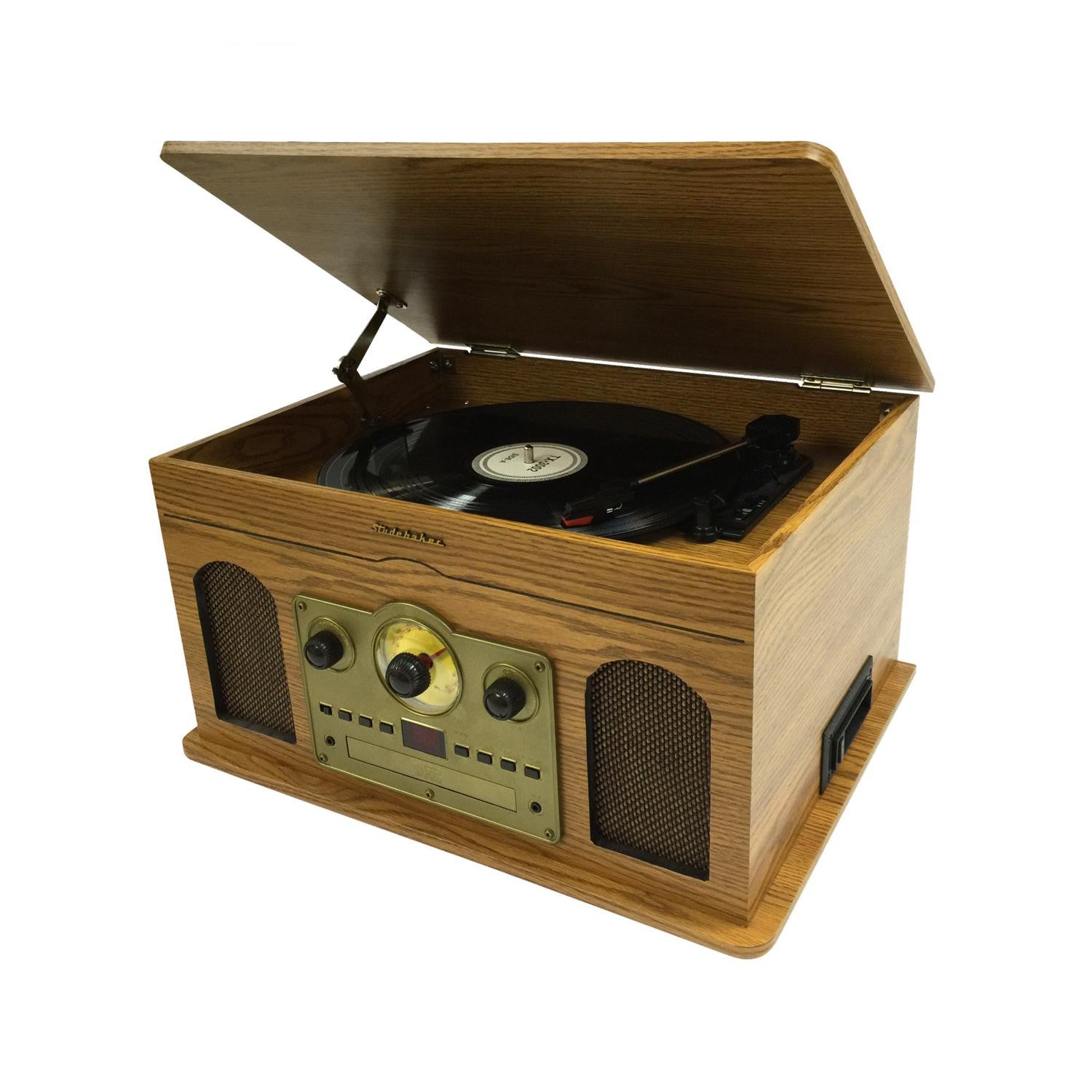 - 5 In 1 Music System Turntable Am/fm Radio Cd Cassette Aux In With Pvc Wrap Finish