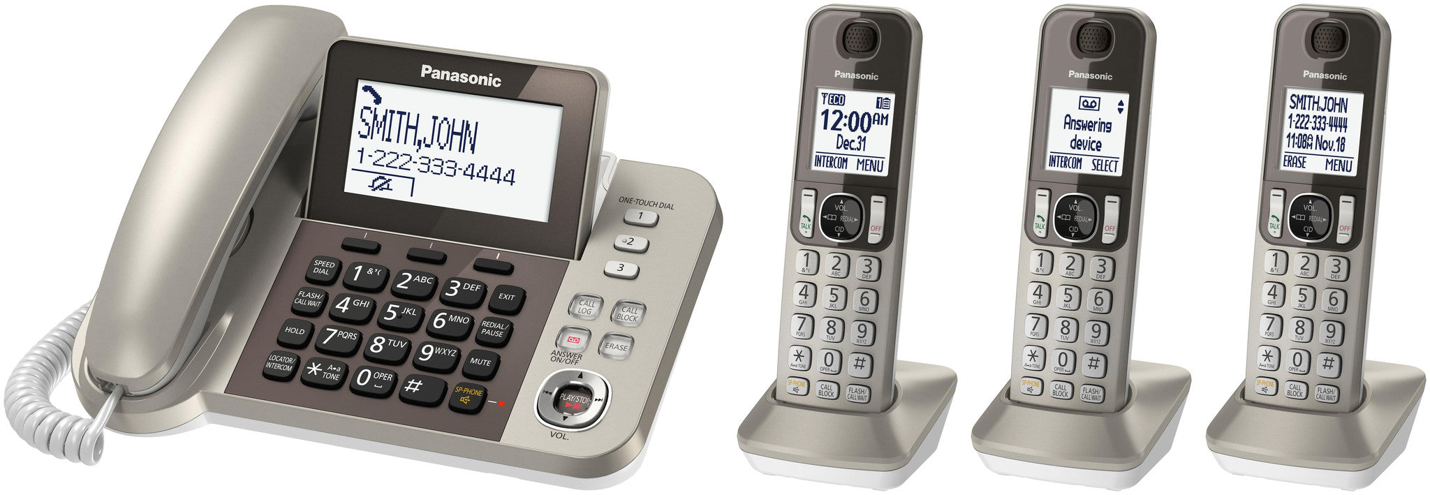 -  Corded/cordless Phone And Answering Machine With 3 Cordless Handsets In Champagne Gold