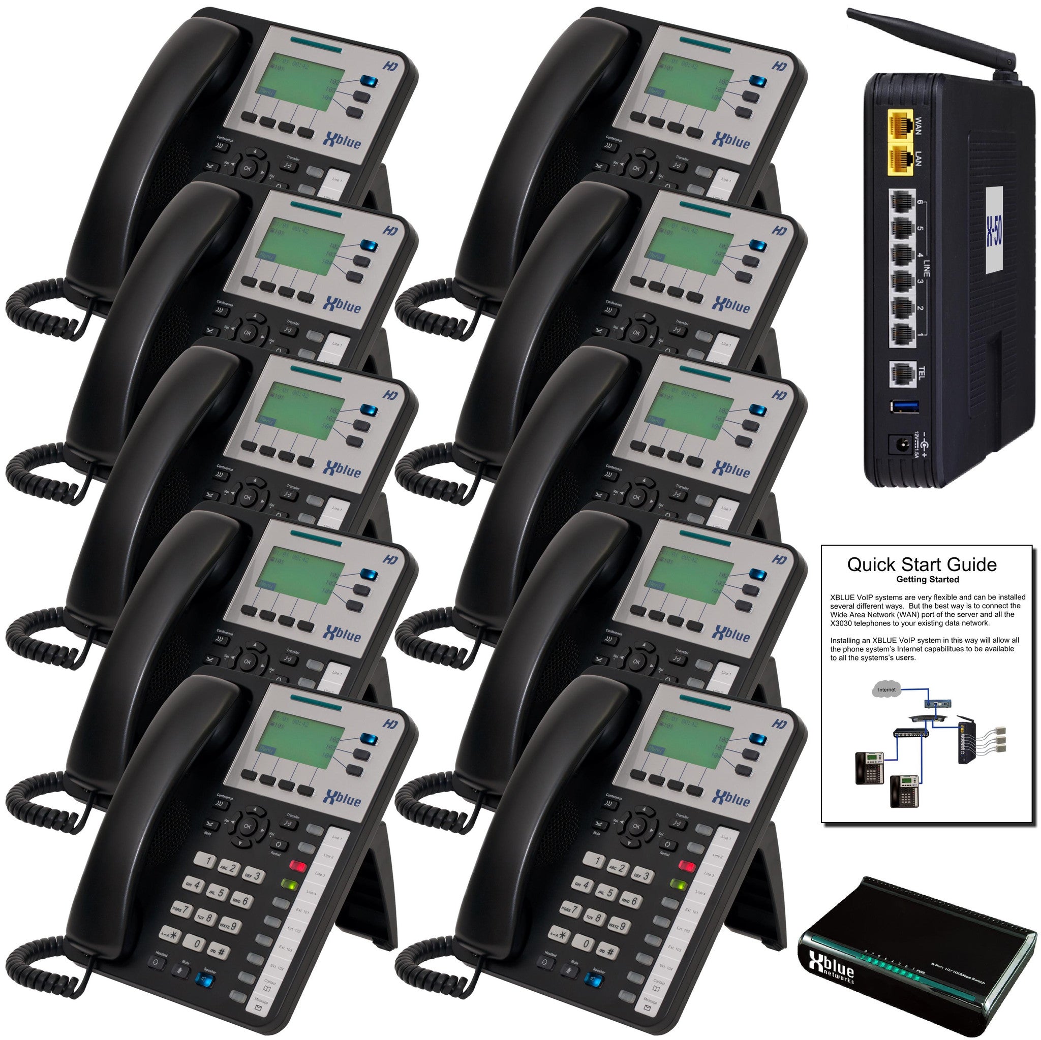 - Includes X50 Ip Phone System And 10 X3030 Sip Phones.